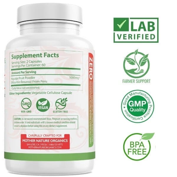 Mother Nature Organics Aguaje pills are made with the pure Aguaje fruit, rich in Phytoestrogens, vitamins, and minerals that enhance the internal and external health of your body, skin, and hair. Aguaje powder is also referred to as Buriti and can be extracted to form a healthy oil called Buriti Oil.