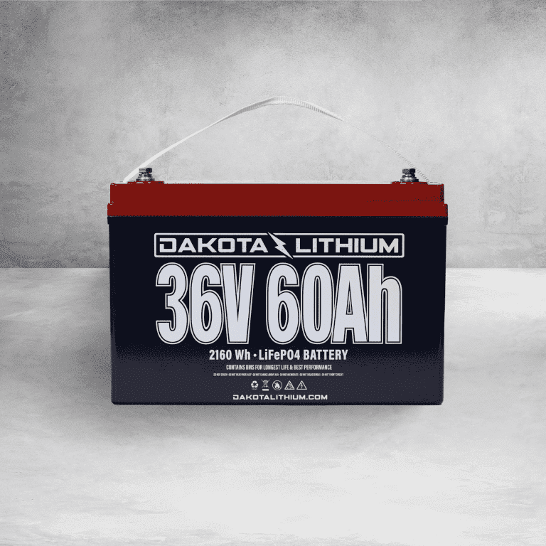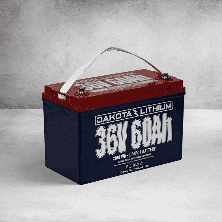 Built Dakota tough with exceptional energy density, this single 36V (volt) 60Ah (amp hour) battery will power your passions from morning to night. Engineered with Lithium Iron Phosphate (LiFePO4) technology this battery has three times the power, one quarter the weight, and lasts 5 times longer than a set of lead acid batteries – providing exceptional lifetime value. 60Ah of capacity is optimal for 36V trolling motors, golf carts and small electric vehicle motors or any 36V deep cycle application in marine or rugged environments where you need lots of power for a long time. This battery is a re-engineered version of DL’s legendary 36V 63Ah single lithium battery but with 2X the max power (120A max continuous discharge), 50% longer lifespan, 30% smaller size (volume) and 25% less weight. Built to endure, this extended lifespan battery is backed up by an 11 year warranty.