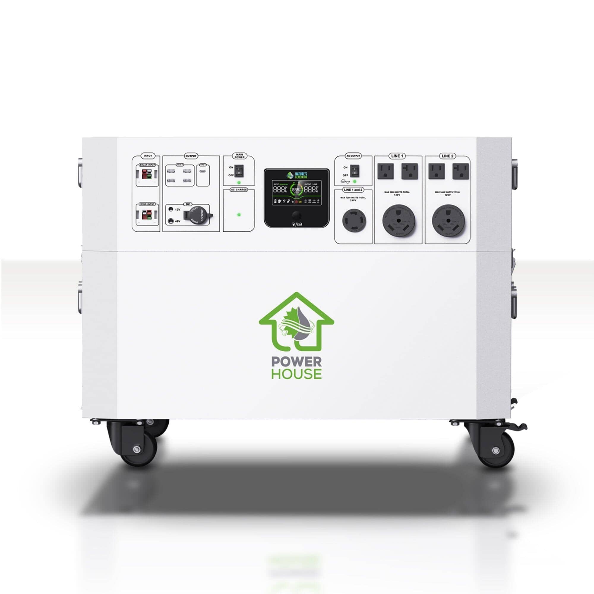 Powerful Whole House Solution: The Nature's Generator Powerhouse is a 120V/240V 7200W whole house generator, with a 4800Wh battery providing dependable home battery backup. Capable of powering everything from small devices to heavy-duty appliances, this system is ideal for anyone seeking a reliable electric generator for home, delivering consistent power for all your home generator system needs.