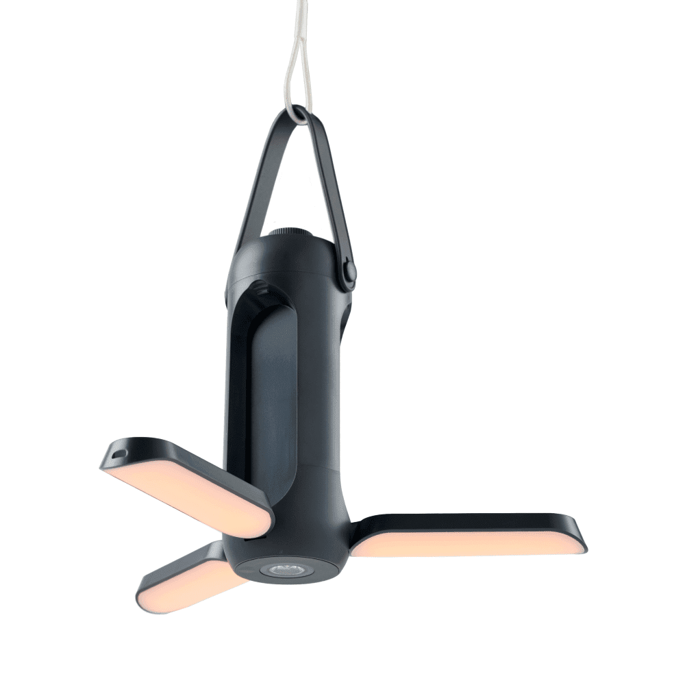 Super versatile light with all the bells and whistles you need. Built-In 10wh battery, lantern, flashlight, and USB outlet. Multi-color hinging light panels, dimmable, hanging strap, long throw flashlight, battery indicator and more. Charge with USB or Solar. Includes USB-A to USB-C charging cord.